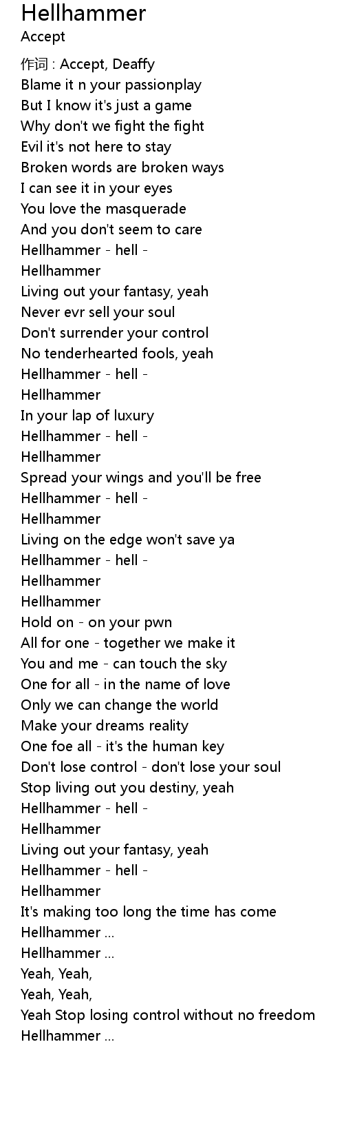 | 歌曲 | Hellhammer |