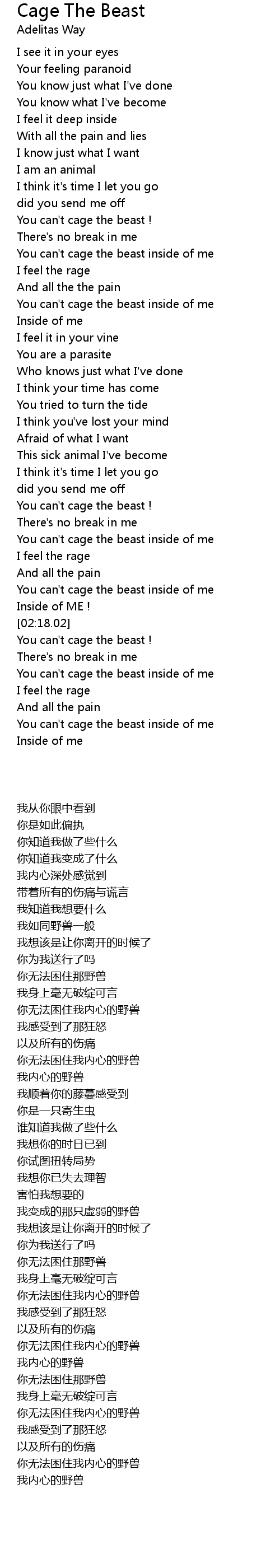 You can't cage the beast inside of me |