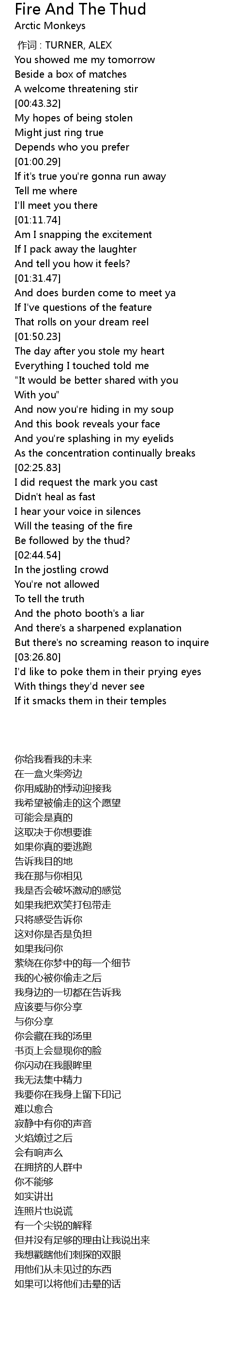 | [00:00.00] | 作词 : TURNER, ALEX |