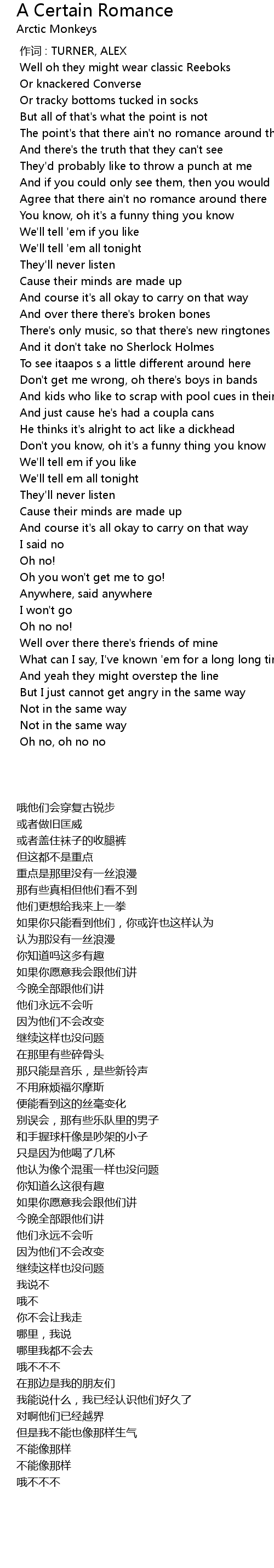 | [00:00.00] | 作词 : TURNER, ALEX |