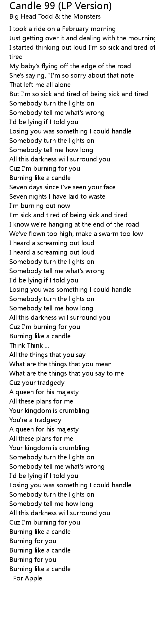 I started thinking out loud I'm so sick and tired of being sick and tired |