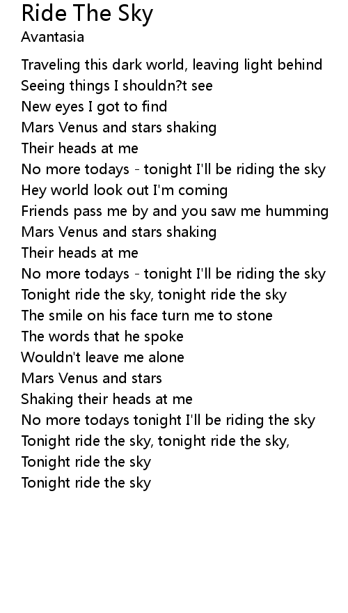 Tonight ride the sky, tonight ride the sky, |