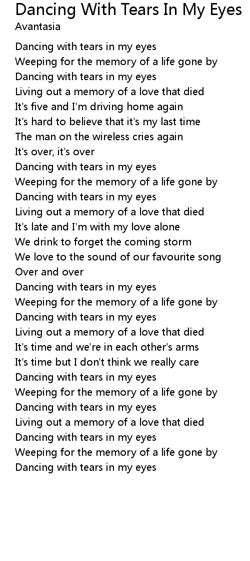 Dancing with tears in my eyes |