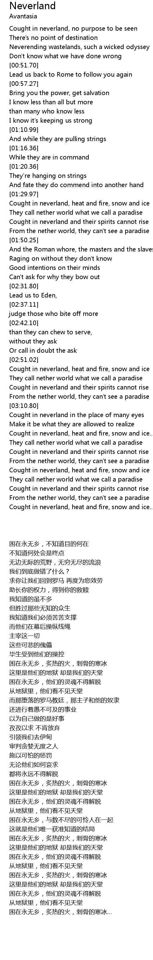 [02:51.96] Cought in neverland, heat and fire, snow and ice