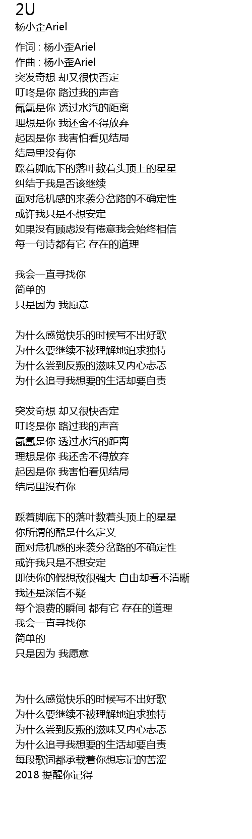 | 作词 : 杨小歪Ariel | |