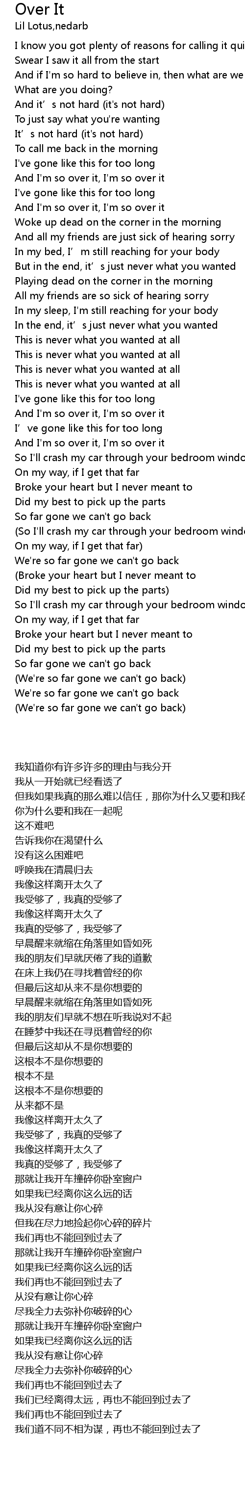 | [00:33.19] | And I'm so over it, I'm so over it |