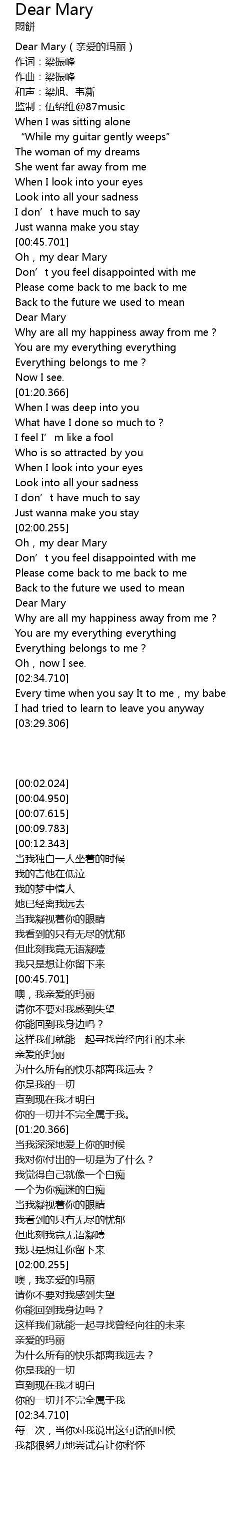 | [00:02.024] | Dear Mary qin ai de ma li |