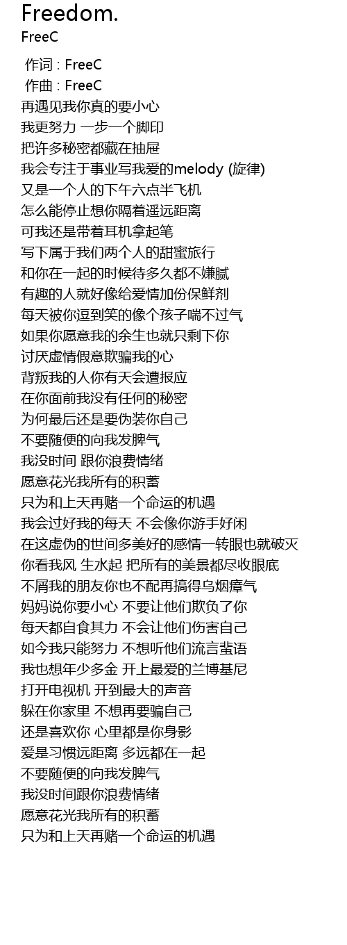 | [00:18] | 我会专注于事业写我爱的melody (旋律) |