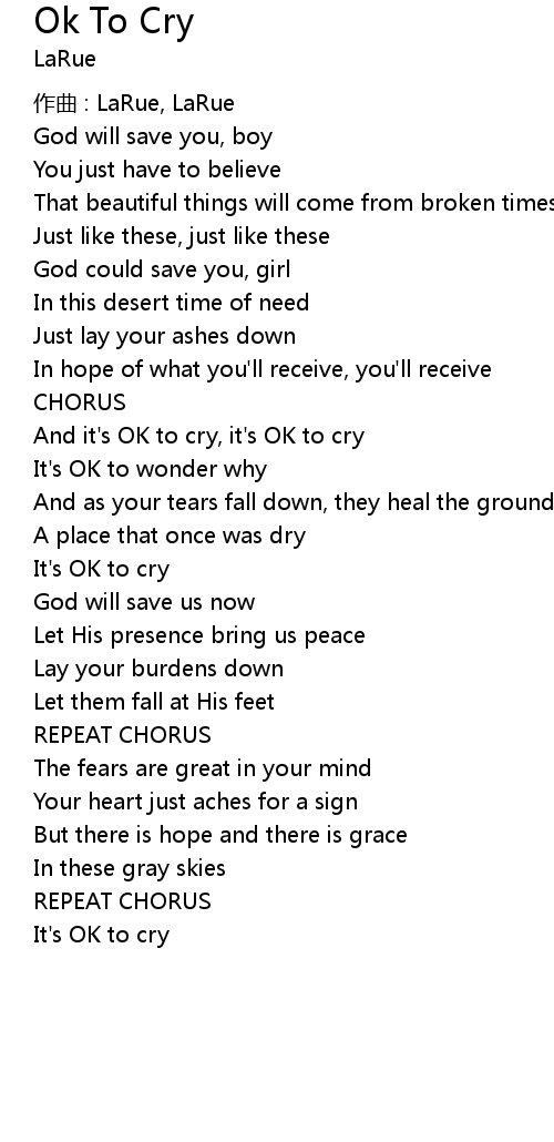 | And it' s OK to cry, it' s OK to cry | |