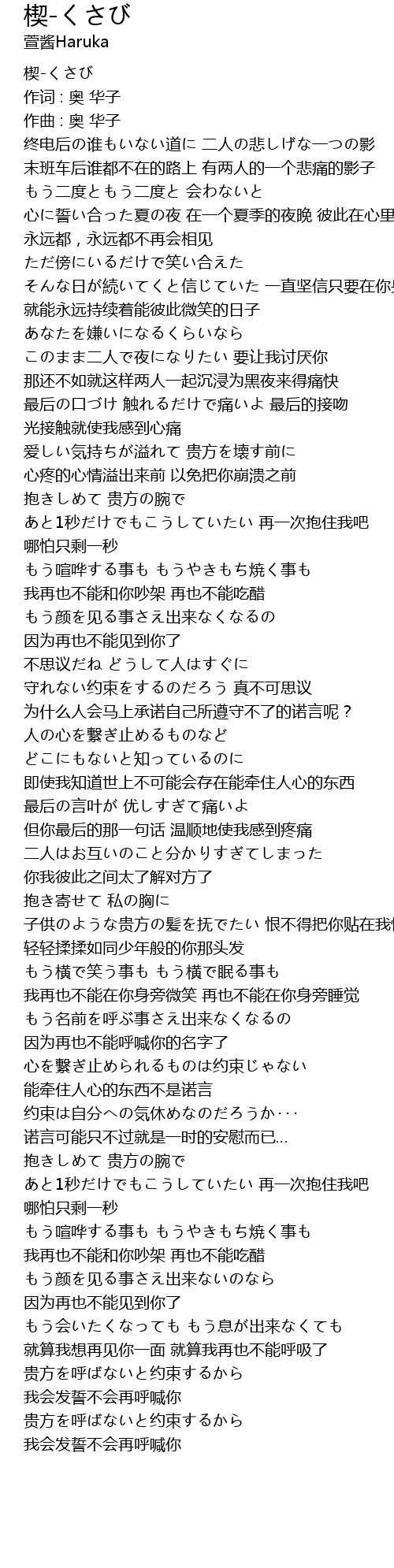| [02:32.522] | 最后の言叶が 优しすぎて痛いよ 但你最后的那一句话 温顺地使我感到疼痛 |