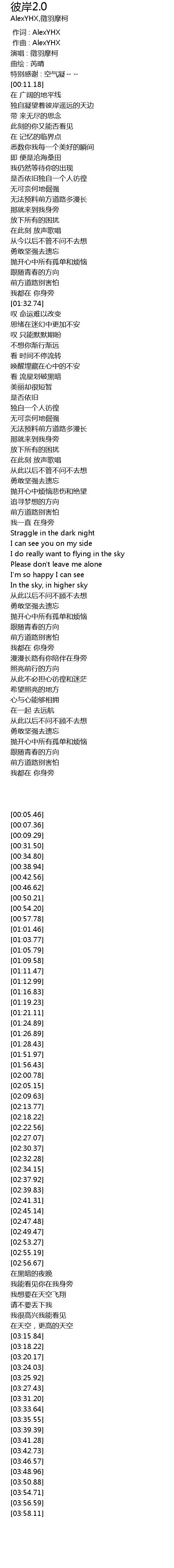 | [00:00.000] | 作词 : AlexYHX |