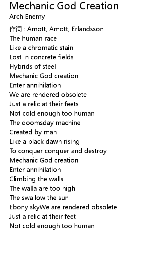 | 歌曲 | Mechanic God Creation |