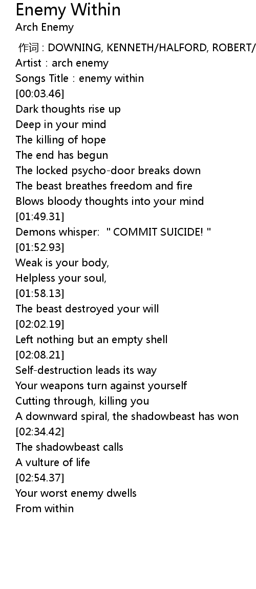 | [01:50.50] | Demons whisper: "COMMIT SUICIDE!" |