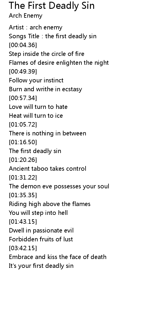 | [00:02.34] | Songs Title: the first deadly sin |