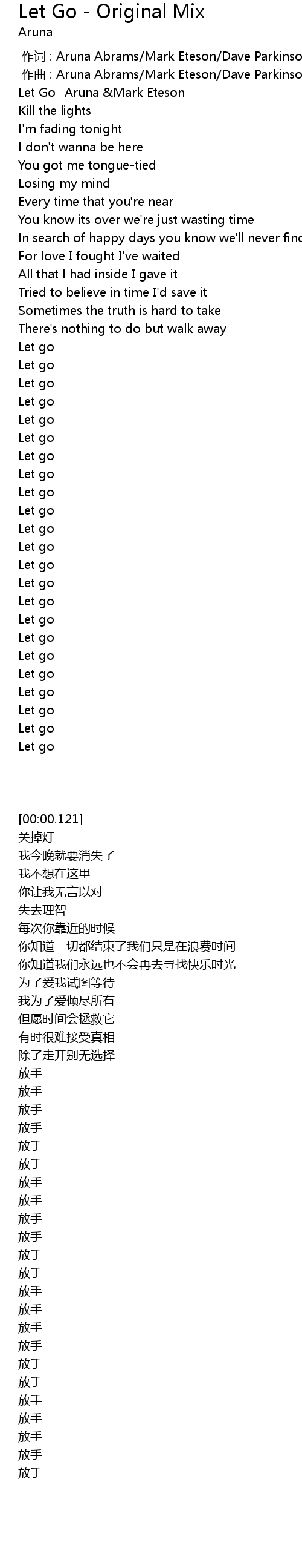 | [00:00.121] | Let Go Aruna Mark Eteson |