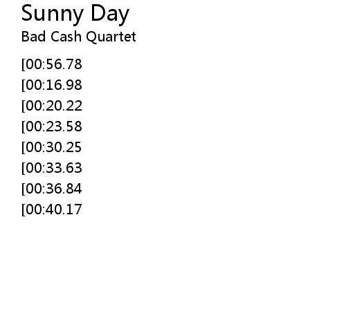 | [00:00.00][00:56.78][00:13.71] | sunny day oh sunny day |