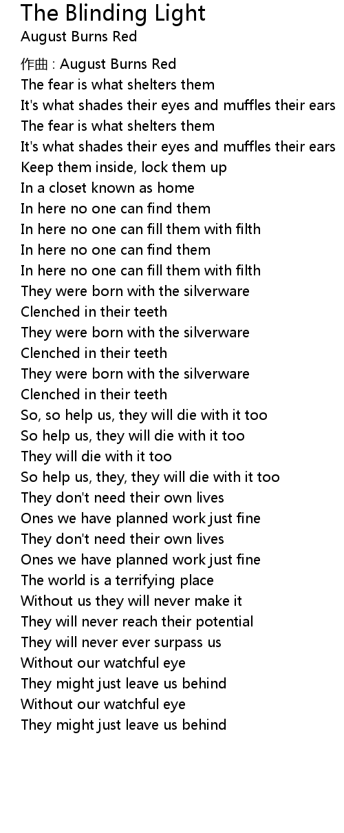 | 歌曲 | The Blinding Light |