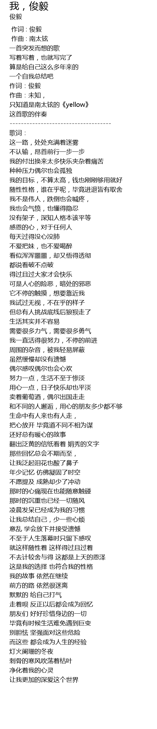 | [00:00.000] | 作词 : 俊毅 |