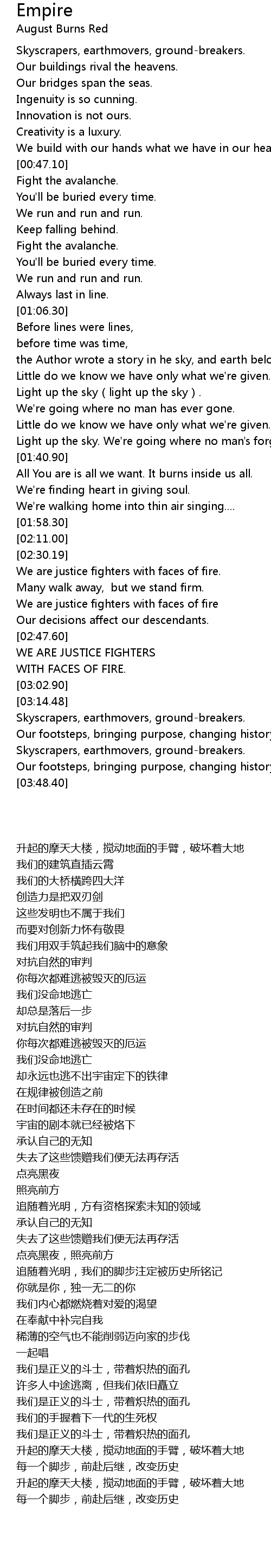 | [01:42.20] | All You are is all we want. It burns inside us all. |
