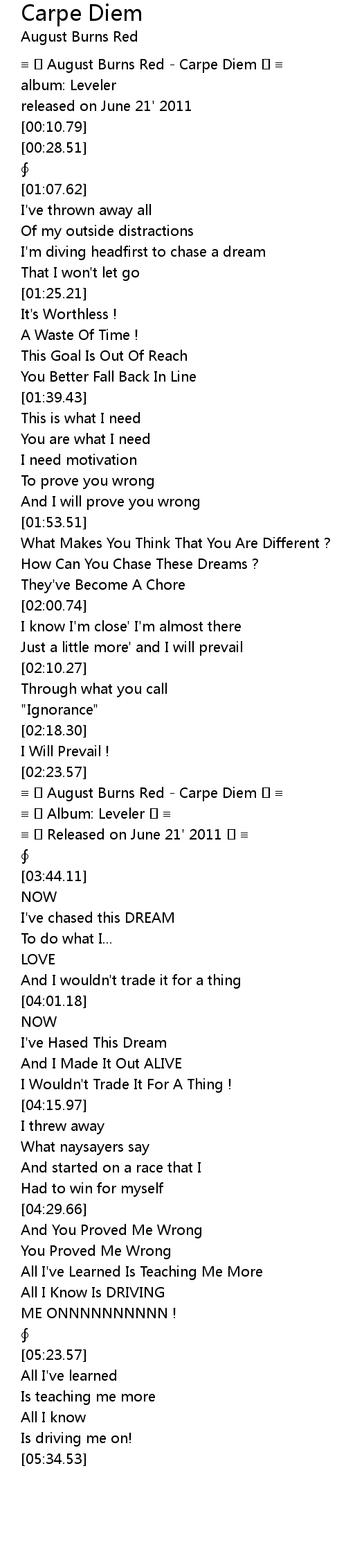 | [02:29.30] | ≡ � August Burns Red - Carpe Diem � ≡ |