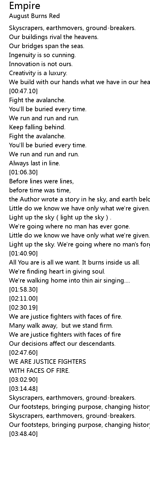 | [01:42.20] | All You are is all we want. It burns inside us all. |