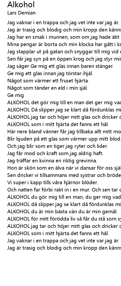 | ALKOHOL det g r mig till en man det ger mig vad jag t l. | |