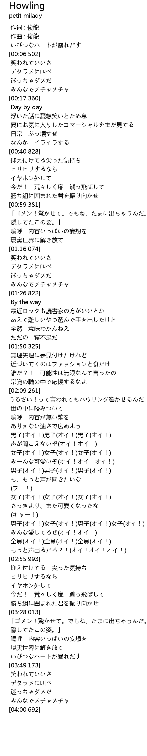 | [02:40.826] | 女子(オイ!)女子(オイ!)女子(オイ!) |