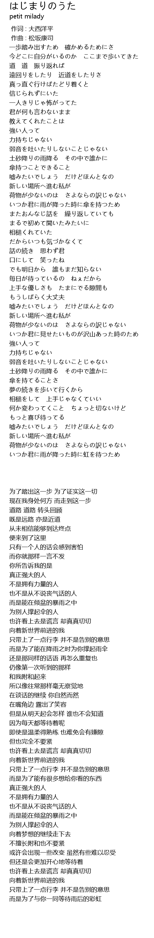 | 歌曲 | はじまりのうた |