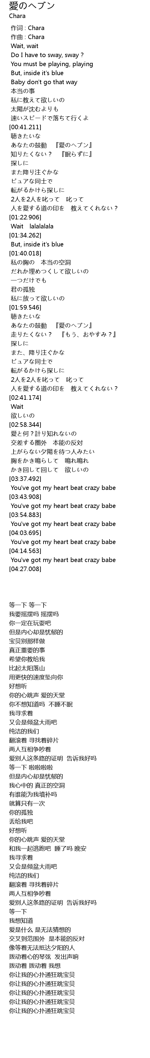 | [04:17.223] | You' ve got my heart beat crazy babe |