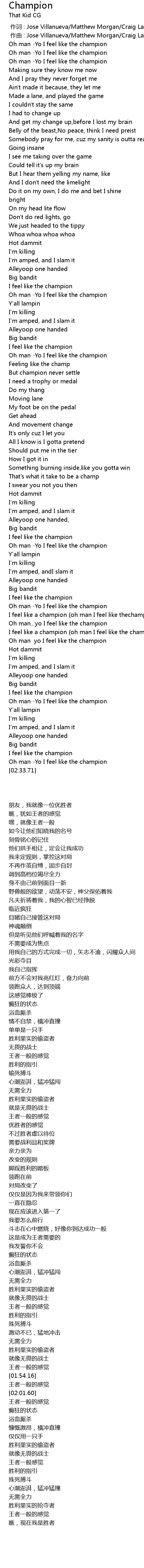 | [00:52.04] | Oh man -Yo I feel like the champion |