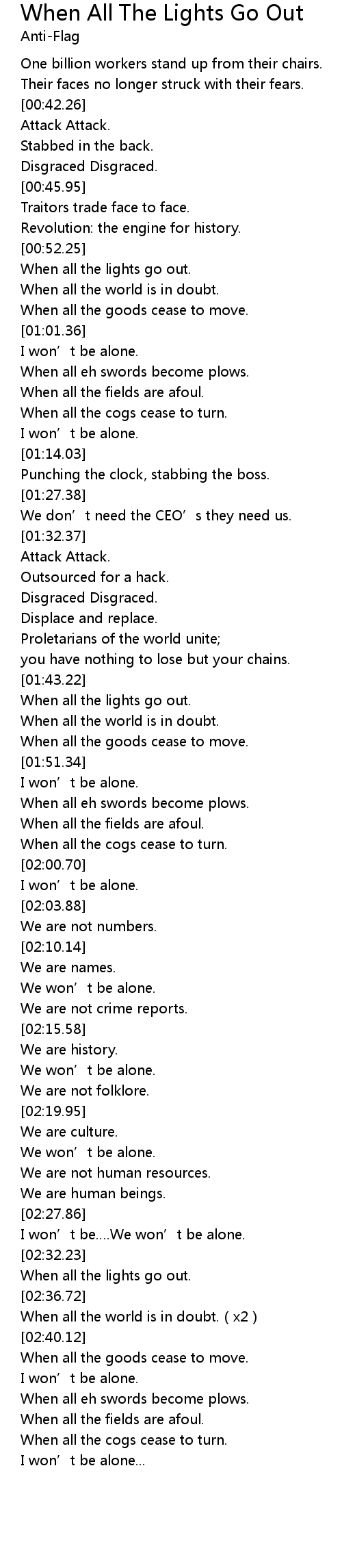 | [01:38.11] | Proletarians of the world unite |