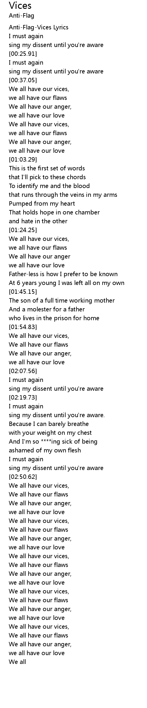 [00:00.29] Anti-Flag-Vices Lyrics