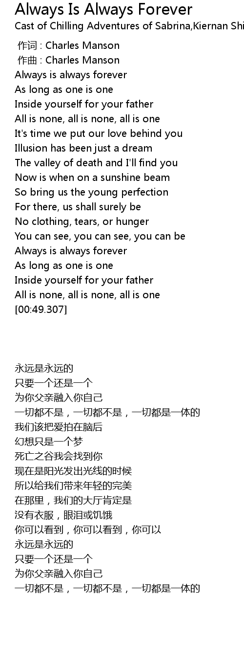 | [00:00.215] | zuò qǔ : Charles Manson |