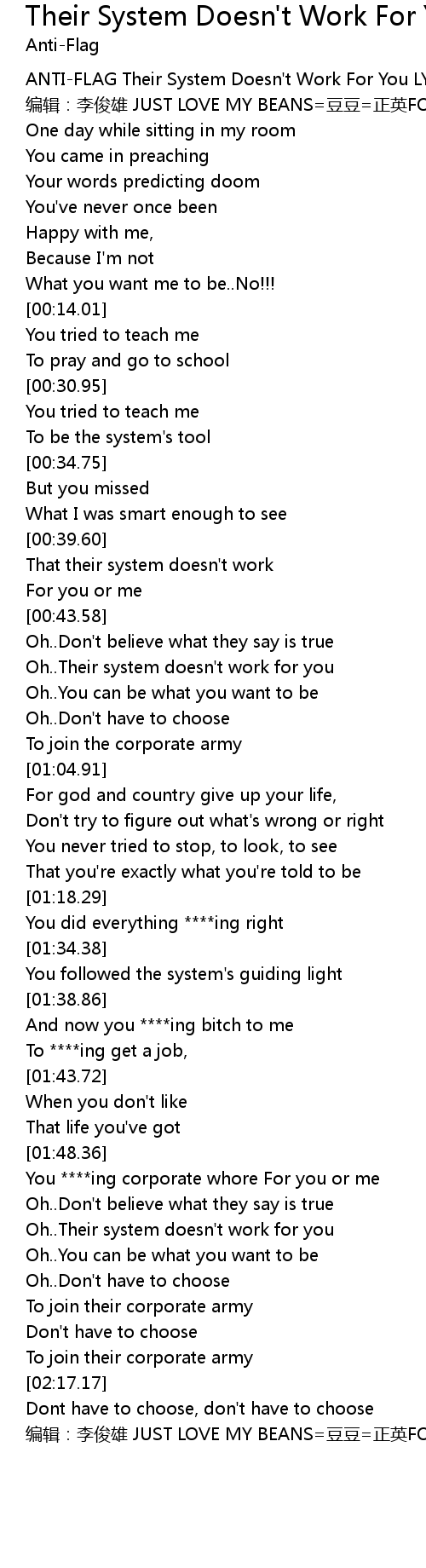 | [00:00.43] | ANTI-FLAG Their System Doesn't Work For You LYRICS |