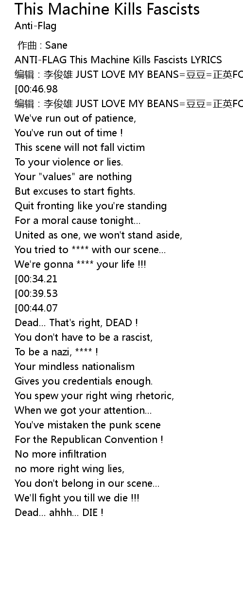 | [00:00.91] | ANTI-FLAG This Machine Kills Fascists LYRICS |