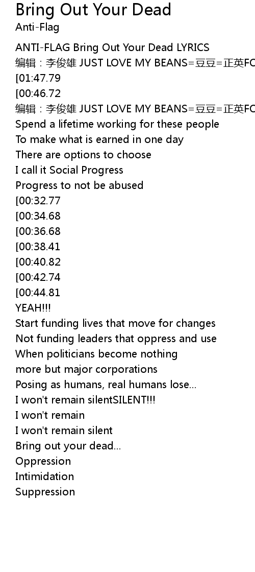 | [00:01.71] | ANTI-FLAG Bring Out Your Dead LYRICS |