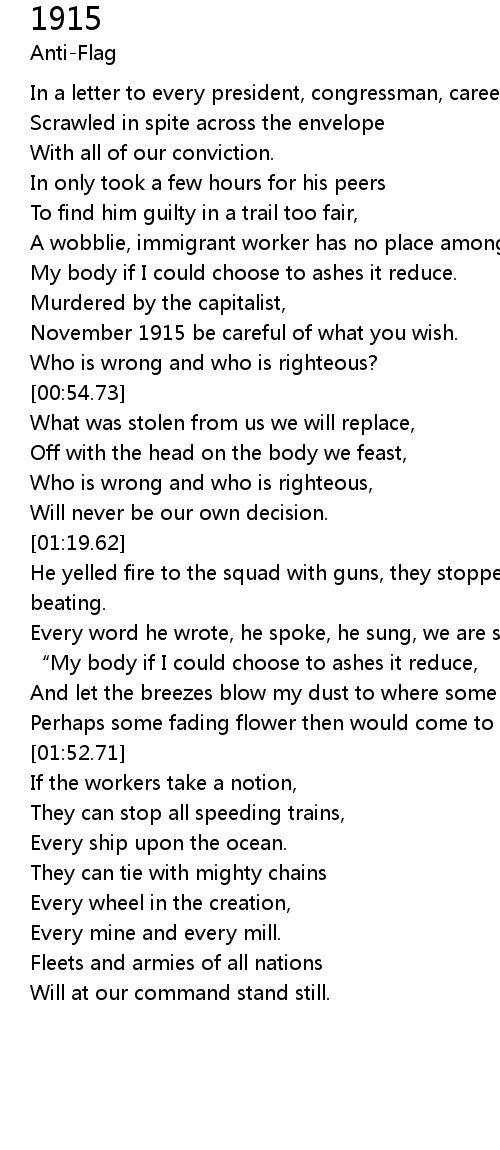 | [00:35.19] | A wobblie, immigrant worker has no place among the living. |