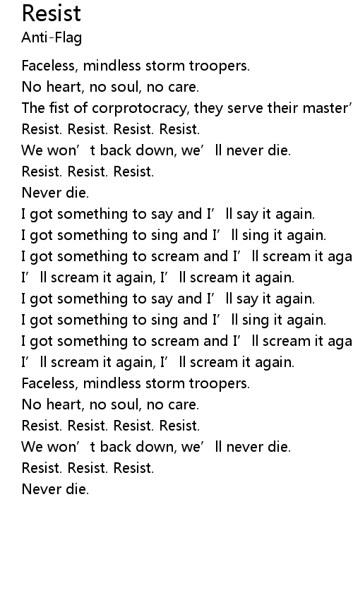| [00:50.98] | Resist. Resist. Resist. Resist. |