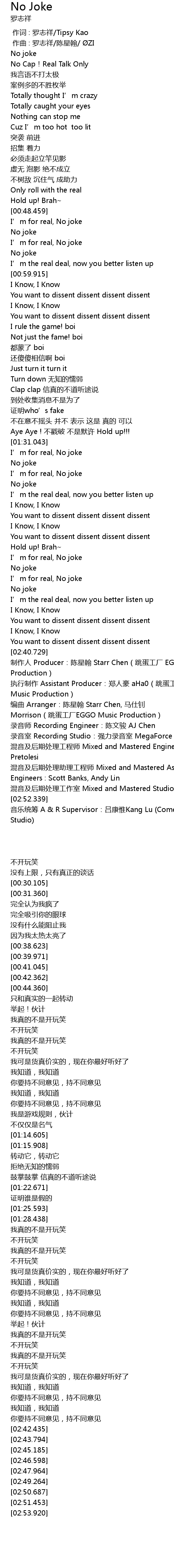 | [00:49.107] | I' m for real, No joke |