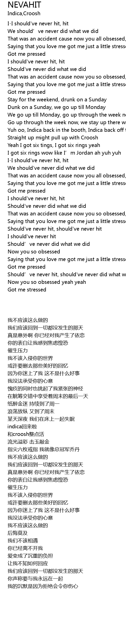| [00:18.77] | That was an accident cause now you all obsessed, **** |