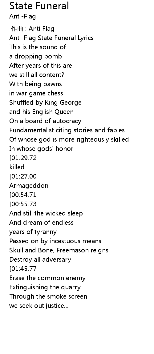 | [00:00.71] | Anti-Flag State Funeral Lyrics |