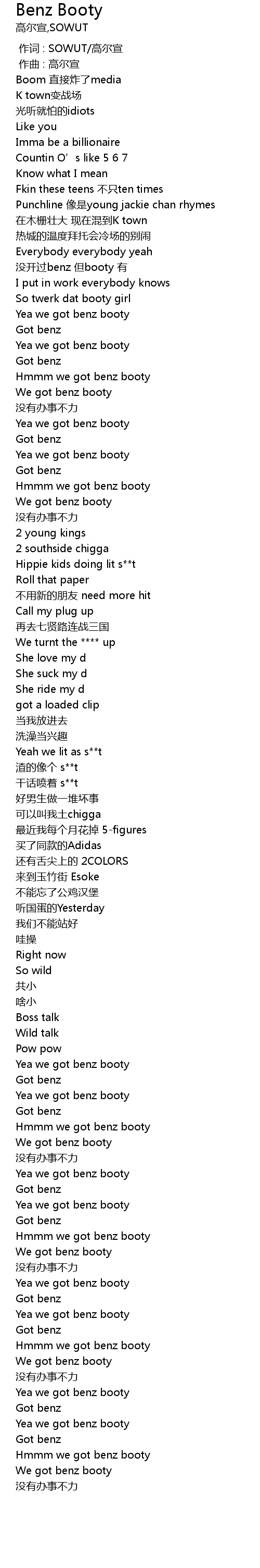 | [00:38.14] | Yea we got benz booty |