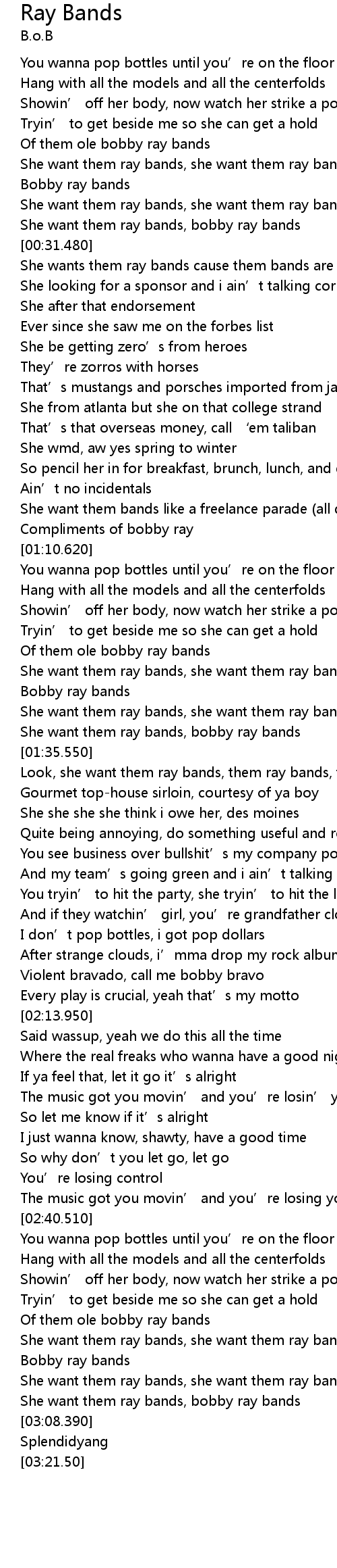 | [03:00.580] | Bobby ray bands |
