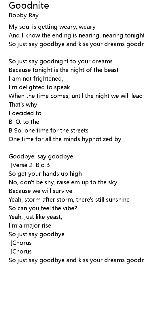 So just say goodbye and kiss your dreams goodnight [Verse 1: B.o.B.]