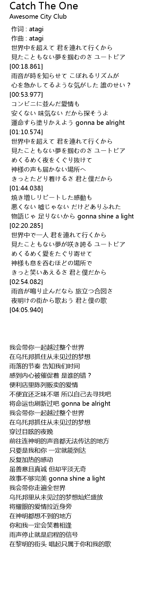 | [02:14.215] | 物語じゃ 足りないから gonna shine a light |