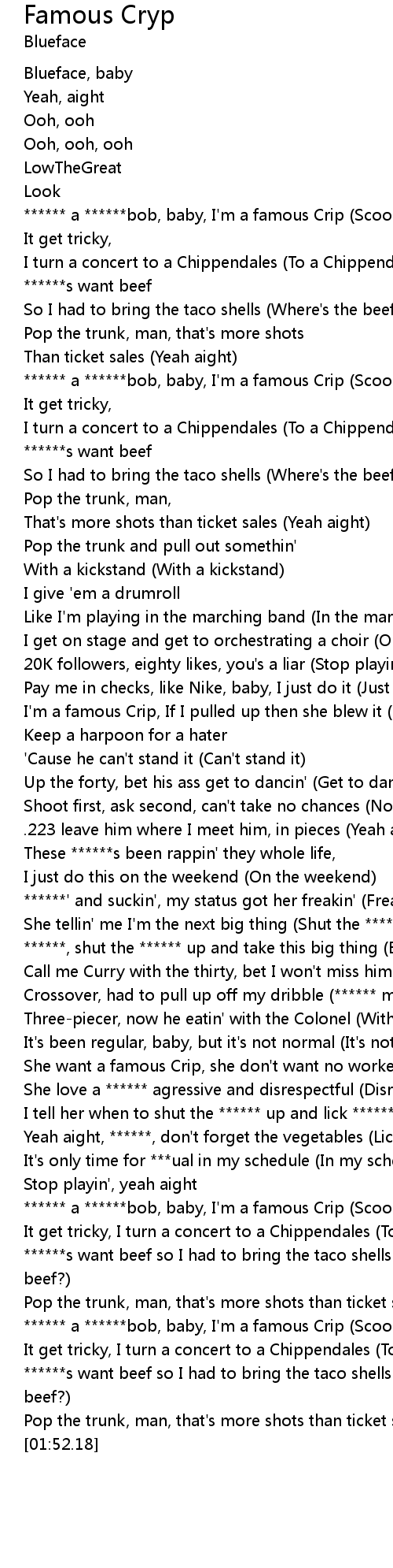 ****** a ******bob, baby, I'm a famous Crip (Scoop) |