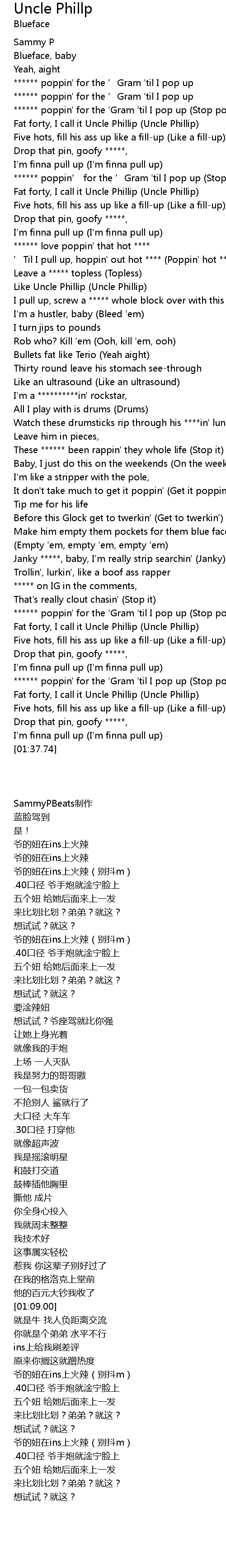 | [01:19.12] | Fat forty, I call it Uncle Phillip (Uncle Phillip) |