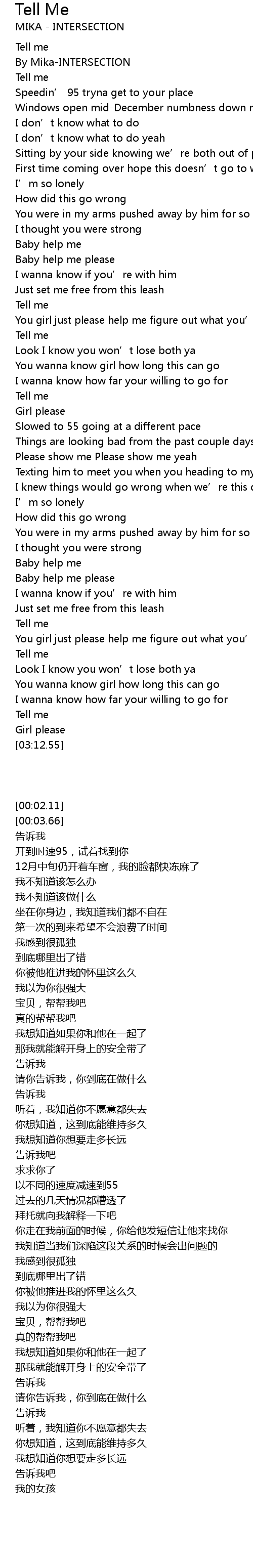 | [02:34.42] | You girl just please help me figure out what you' re dealing with |