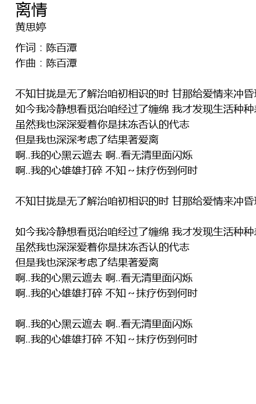 | 啊..我的心雄雄打碎 不知~抹疗伤到何时 |