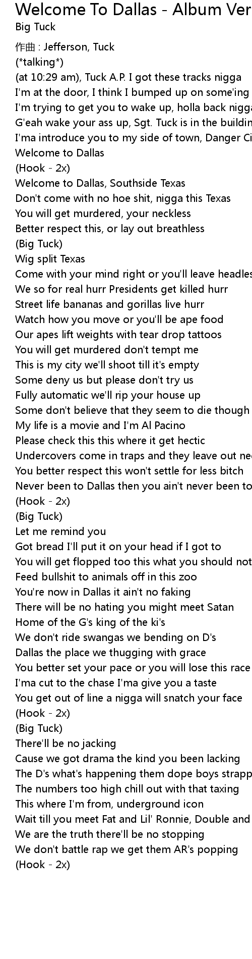 | 歌曲 | Welcome To Dallas - Album Version (Explicit) |